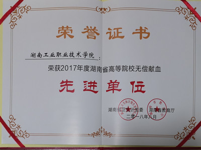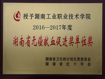 与此同时,我校在湖南省卫生计生委、湖南省教育厅联合通报中被授予“2017年度湖南省驻长高等院校无偿献血先进单位”。这是我校连续三年获此殊荣。