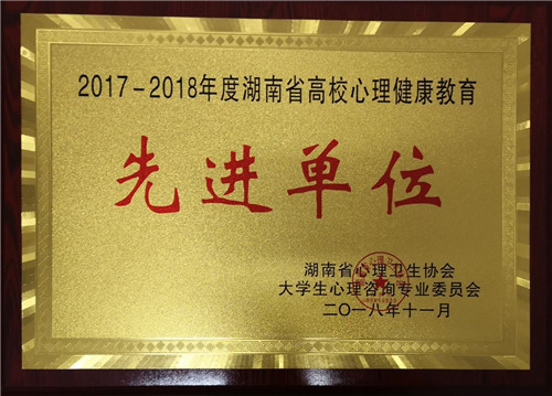 我校荣获2017-2018年度湖南省高校心理健康教育先进单位