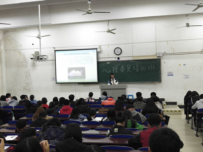 本次系列培训先后邀请学生处心理健康教育与咨询中心廖伟、机械工程学院何科英、经济管理学院陈瑶、工业设计与艺术学院赵芳四位老师分别围绕《大学生常见心理疾病的诊断与预防》、《团体心理辅导及主题班会设计与操作》、《朋辈心理辅导技巧》、《如何做一名心理委员》等主题进行了专题培训。培训内容涉及心理委员的职责、作用和工作技能、大学生常见心理危机识别、怎样在团体的情境下进行心理辅导、朋辈之间如何自助互助的等多个方面。