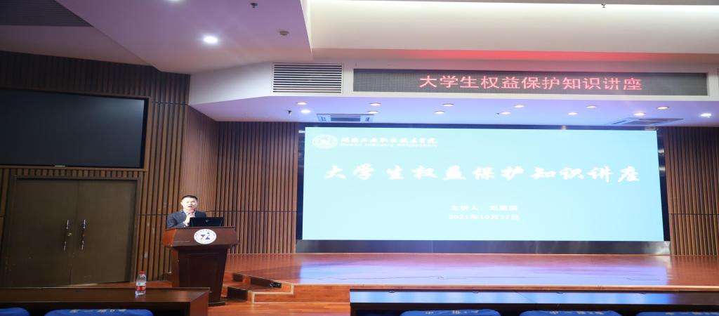 10月27日上午,学校在图书馆报告厅召开“大学生权益保护”知识讲座,讲座由湖南大众传媒职业技术学院马克思主义学院副院长、湖南省高校首届“最美思政课教师”刘爱国副教授主讲,学生工作部(处)副部(处)长彭波主持,学校150余名师生参加。