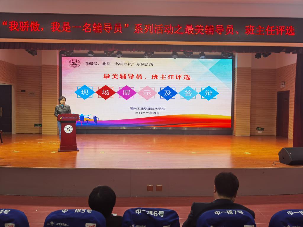 最美辅导员、最美班主任评选活动是我校“我骄傲,我是一名辅导员”系列活动之一,现场展示和答辩是本次评选活动的重要环节之一,目的是为参加评选活动的老师们提供分享工作经验、展现自我风采的平台。长期以来,我校高度重视学工队伍建设,举办最美辅导员、班主任评选活动,旨在更好地调动学工人员爱岗敬业、履职尽责,增强职业归属感、荣誉感,全面营造人人争做“最美辅导员”、“最美班主任”的校园氛围,为努力建设一支助力学生健康成长成才的优秀学工队伍打下坚实基础。
