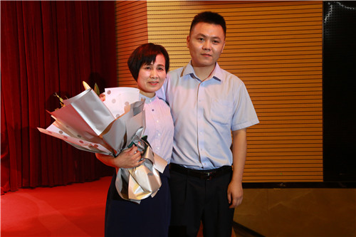 一位神秘嘉宾的出现也让现场响起了热烈而持久的掌声,他就是情景剧中王淼的原型——王永幸,现在是湖南常德烟机最年轻的技师、全国青年岗位能手、湖南省五一劳动奖章获得者。他上台与罗老师拥抱,轻声说道:“罗老师,谢谢您!如果没有您的鼓励,就没有我的今天。”