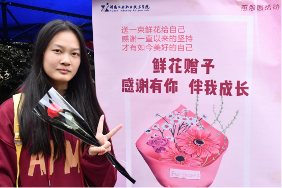 “发现美好,感恩当下”图片打卡活动以照片墙的形式展出,展示了师生对生活的热爱,号召广大师生珍爱生命、感恩美好、不负韶华。在“感恩有你,爱的传递”手工制作活动现场,同学们拿起画笔为娃娃添彩,充分发挥自己的想象力,体会创作的乐趣,感受心态平和带来的成就感。电商22-5班的周心如感慨道:“参加活动让我心情愉快,专注于上色过程好像情绪得到平静,画完这个娃娃很有成就感,我要把它送给我的好朋友,传递这份平静,也感谢她的陪伴。”在“心随影动,感恩父母”观影活动中,《你好,李焕英》这部电影让现场许多学生流下了感动的泪水,观后大家纷纷表示将常怀感恩之心,懂得珍惜、珍爱、珍重。“感恩有你、伴我成长”鲜花赠予活动和“感恩遇见,一路成长”真情表白活动吸引了400多名学生的参与,同学们在活动中用心诠释对自我、对他人的感恩之情。