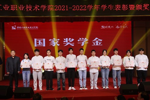 会上宣读了《关于表彰学校2021-2022学年“十佳大学生”、“优秀班集体”等先进个人、优秀集体的决定》《关于表彰2022年上学期学校奖学金、创新创业奖学金和技能竞赛奖学金获得者的决定》《关于表彰2021-2022学年国家励志奖学金获得者的决定》《关于对2021-2022学年国家奖学金获得者进行表彰的决定》,现场嘉宾为学生代表上台颁奖。