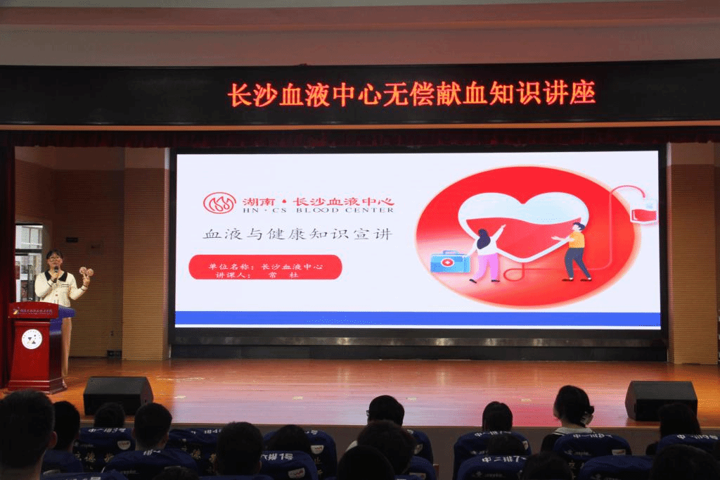 讲座由长沙血液中心的专家常杜医生主讲,她用诙谐幽默的语言,从为什么要献血、怎样献血、献血前后的注意事项等三方面为同学们详细讲解无偿献血知识。“献血无偿,用血收费,这是为什么呢?”“这是因为血液从采集、分离、检测、存储到运输整个过程中都产生了成本。”讲座现场,常杜医生采用通俗易懂的语言解答同学们的疑惑。