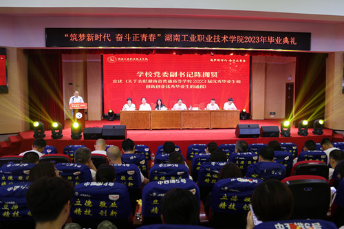 党委副书记陈拥贤宣读《关于表彰湖南省普通高等学校2023届优秀毕业生和创新创业优秀毕业生的通报》