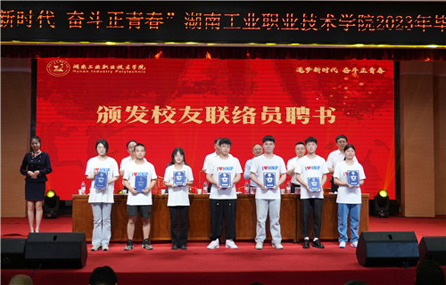 学校纪委书记王波宣读《关于聘请2023届毕业生校友工作联络员的决定》,肖阔等125名学生被聘为校友工作联络员。