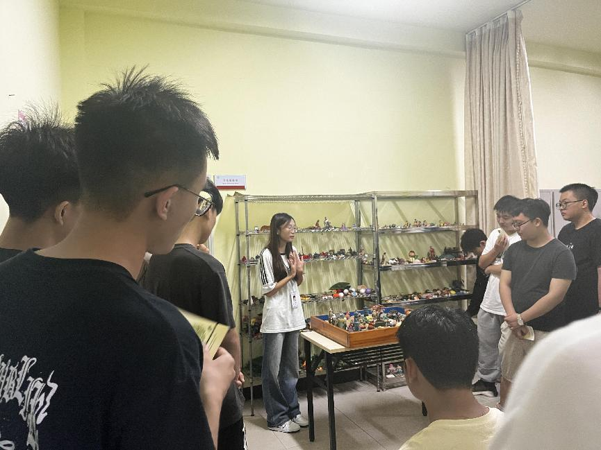 讲解员首先向新生详细介绍了心理健康教育与咨询中心的主要职责和心理咨询预约方式,随后引导新生依次参观了预约接待室、沙盘治疗室、个体咨询室、音乐放松室、心理测评室、宣泄室等功能室,并为每位新生发放心理健康手册--《心理健康掌中宝》,科普心理健康知识的同时为新生耐心解答了关于心理咨询、心理求助、沙盘游戏、生活适应等疑问。2023级新生在讲解员的介绍下,基本掌握了心理咨询预约的基本流程,了解了心理健康教育与咨询中心的各种预约渠道,对心理咨询有了全新的认识,有效消除了他们对心理咨询的恐慌和误解。汽营2023-1徐子蔺表示“这里的环境让人很放松,今后如果我在生活学习中遇到心理困惑会选择到心理中心来寻求老师的专业帮助。”