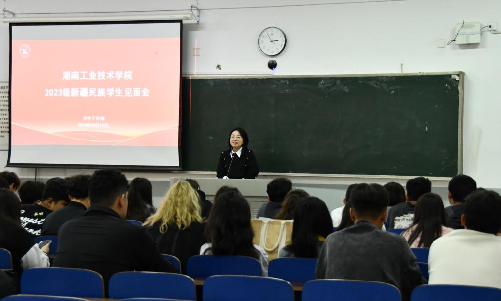 会上,杨迪禹副部长对2023级新疆民族学生表示热烈欢迎和祝贺,她介绍了学校办学历史、专业特色,以及学校近年来对新疆民族学生开展的教育服务工作,希望大家积极融入校园生活,不断提升综合能力与素养,为今后更好的建设家乡、服务祖国积极贡献自己的力量。
