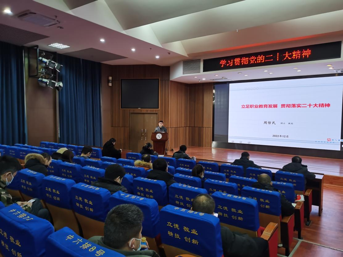 12月1日下午,教务工作党总支在图书馆报告厅组织开展学习贯彻党的二十大精神专题党课,党课由党总支书记周哲民主讲,党总支全体党员参加党课学习。
