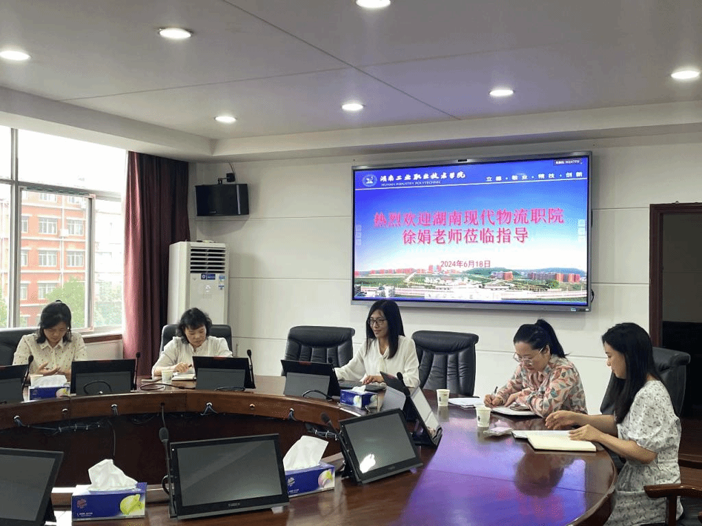 2024年6月18日,湖南现代物流职业技术学院质量诊改与督导办徐娟老师应邀来到我校进行研讨交流。在本次活动中,发展规划与职业教育研究中心的张莲芳、周艳、李思、杨芳出席了交流座谈会。