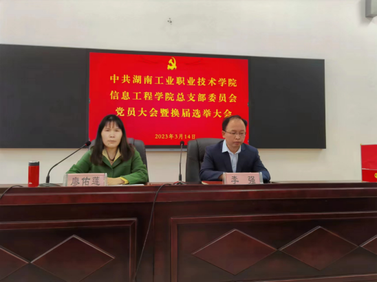 3月14日下午,信息工程学院总支部委员会党员大会暨换届选举大会在敏行楼101隆重举行。学校副校长李强、学院全体党员及学生正式党员共83人参加了此次会议,会议由廖佑莲同志主持。