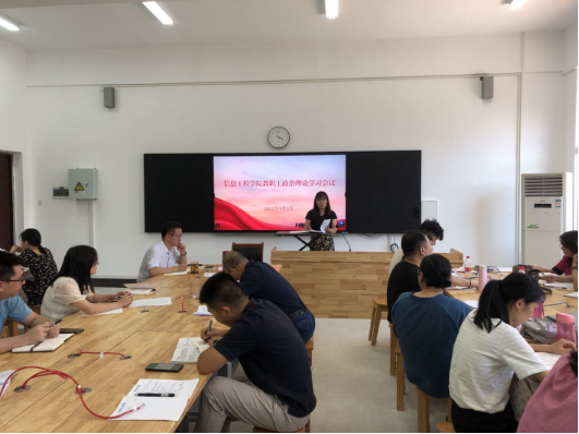 2022年9月6日下午15:00,信息工程学院在敏行楼303会议室开展教职工政治理论学习,全院教职员工参加了此次学习,会议由学院党总支书记廖佑莲主持。
