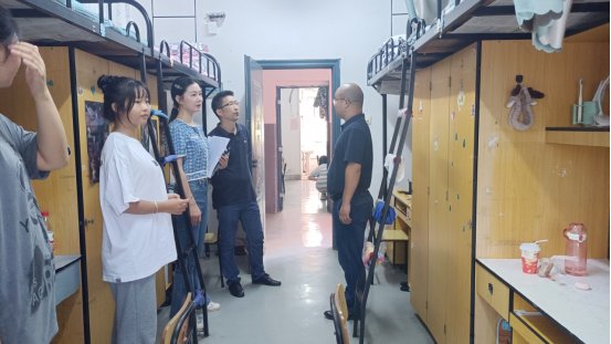 副院长颜浩龙在实训教研室主任徐运标、学生干事吴倩的陪同下前往十栋、十一栋宿舍走访,他希望班上同学们亲切互动,形成团结友爱,积极互助的班级氛围,同时希望新生们尽快调整好自己的学习状态,尽管在进入大学后面临的选择更多,但要仍重视知识,努力学习,不断充实自己。