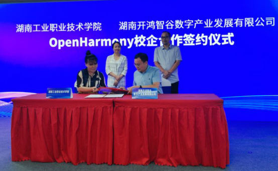 会议现场,yabocom(中国)官方网站与开鸿智谷公司完成了OpenHarmony校企合作签约。双方表示未来将锚定OpenHarmony产业学院、OpenHarmony技术实习实训基地、人工智能、工业软件、工业大数据等各个新型产业链,共建校企一体化课程体系、高水平实习实训基地,推动高职素质技能人才培养范式变革。