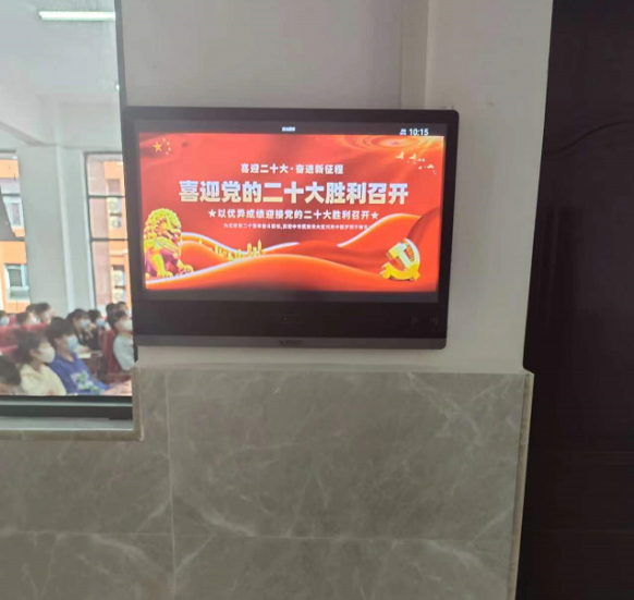 学院党总支部高度重视此次以二十大开幕会直播收看工作,提前对活动进行了部署安排。根据参会人员类型、人数和教室座位数量统筹安排活动场地,将敏行楼101、104、304和320教室分别作为教师党员、学生党员、团学干部学生主活动场地,同时以团支部为单位安排尚善楼14间教室做为分活动场地。因受活动场地条件与疫情防控等因素限制不能进行集中学习观看的同学,也进行了分散学习安排。经学院领导审核同意后下发活动通知,确保各党支部及团总支部全体参会人员知悉活动时间、活动地点和活动要求。严格落实疫情防控要求,要求全体参会人员佩戴口罩,安排专人在敏行楼入口处对参会人员的健康码进行查验。学院提前安排技术人员对敏行楼4个主活动场地的电子显示屏、视频音频信号进行调试,为活动当天通信信号顺畅、图像声音清晰提供技术保障。在敏行楼一楼大厅的电子显示屏和每间教室的电子班牌上展示“喜迎二十大”相关主题的海报及图片,为活动开展营造热烈隆重的氛围。