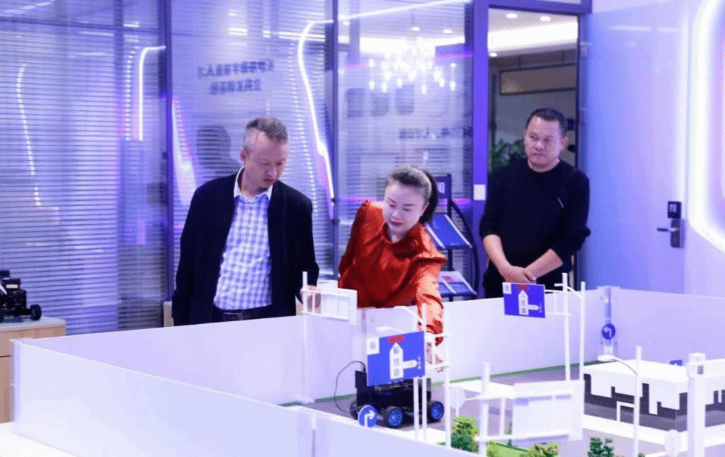 调研小组对阳光职业学校与长沙市人力资源和社会保障局、华为技术有限公司三方共建的长沙市数字技能人才公共实训基地进行现场参观,重点了解信息通信网络运行管理员(5G)、人工智能训练师(AI)等职业资格认证培训场所情况。