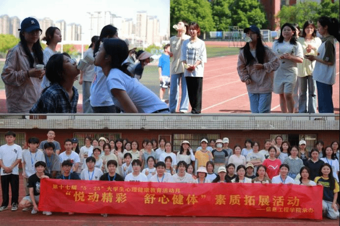 “这次素质拓展活动是学校第十七届‘5·25’心理健康教育活动月的活动之一,旨在通过一系列趣味挑战项目,让同学们在放松的游戏氛围中尽情释放压力。”信息工程学院心理干事刘怡老师说。