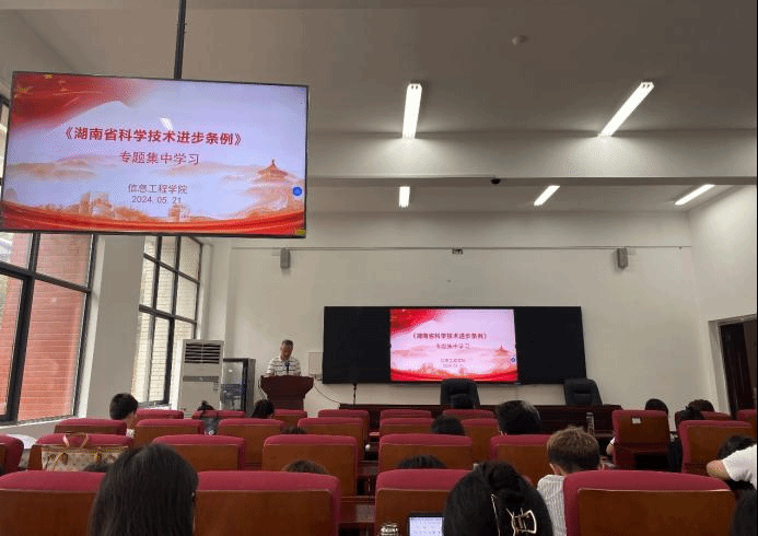 5月21日,学院副院长周朕带领全院教职工共同学习了《湖南省科学技术进步条例》,旨在提高全院教职员工对科学技术进步重要性的认识,推动学院在科技创新方面的持续发展。