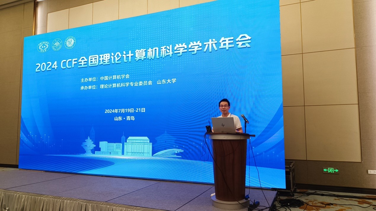 2024年全国理论计算机科学学术年会(NCTCS2024)于2024年7月19日至21日在青岛举行。本次会议由中国计算机学会主办、中国计算机学会理论计算机科学专业委员会和山东大学承办。信息工程学院肖卓宇教授受邀参加会议,并进行学术报告演讲。
