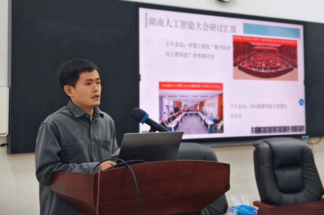 11月19日下午3:00,信息工程学院在敏行楼101会议室组织全体教师开展了2024年湖南人工智能大会参会心得分享,会议由信息工程学院周朕副院长主持,大数据教研室专任教师周安众作为代表分享了自己在中国工程院“数字经济与工程科技”学术研讨会和“人工智能与智慧社会”分论坛上的心得与收获。