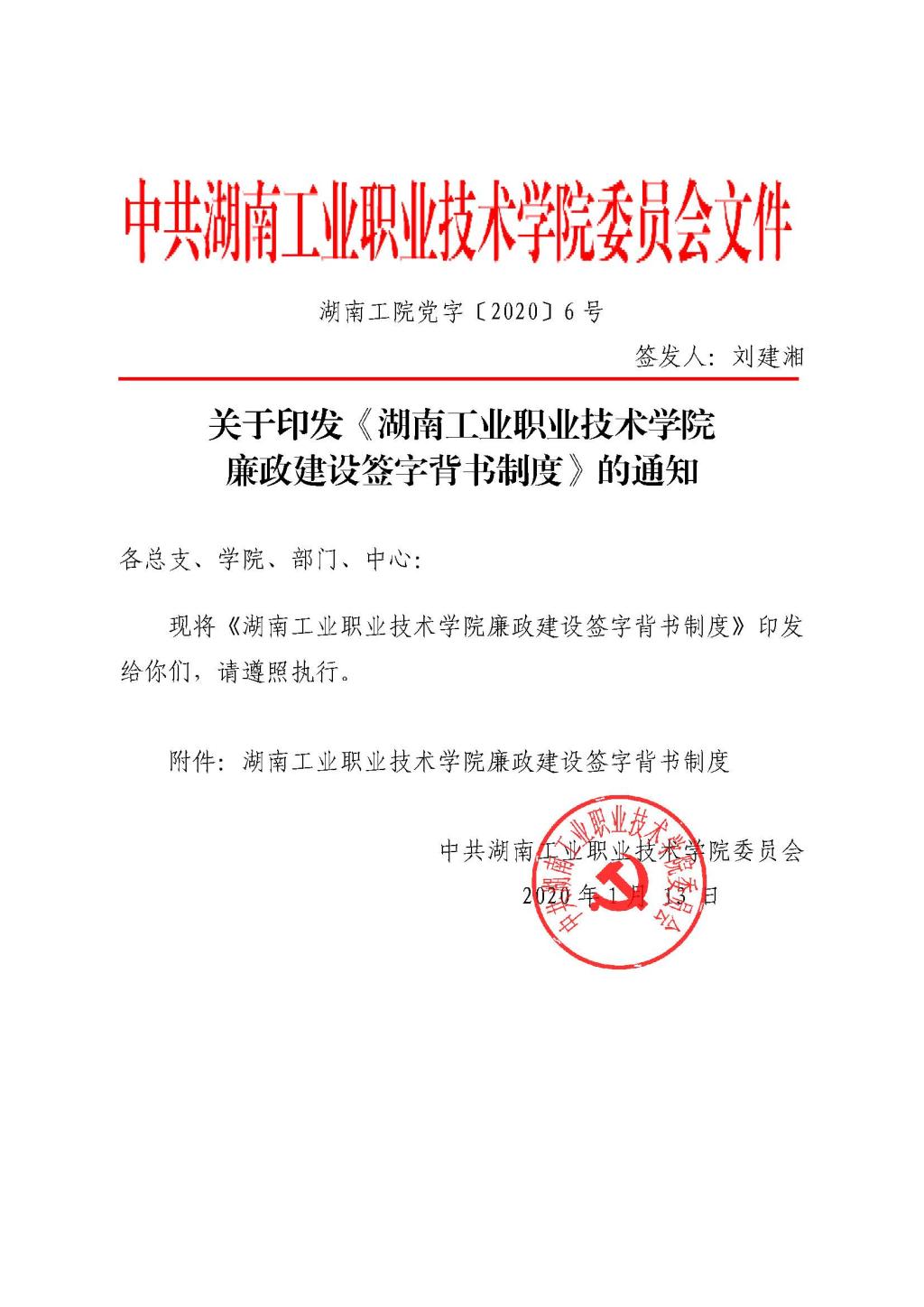 党字[2020]6 号yabocom(中国)官方网站 廉政建设签字背书制度