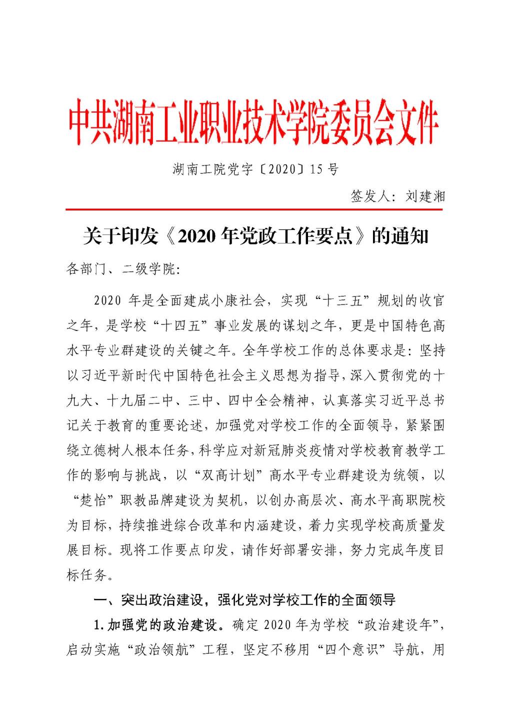 党字[2020]15号关于印发2020年党政工作要点的通知.pdf