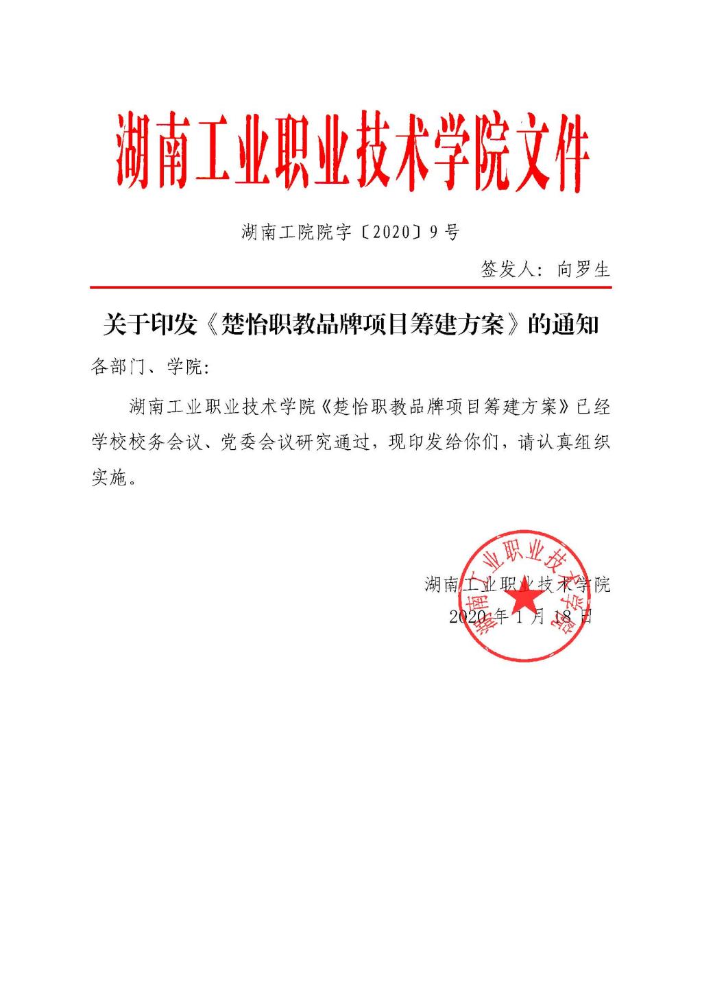 院字[2020]9 号关于印发《楚怡职教品牌项目筹建方案》的通知.pdf
