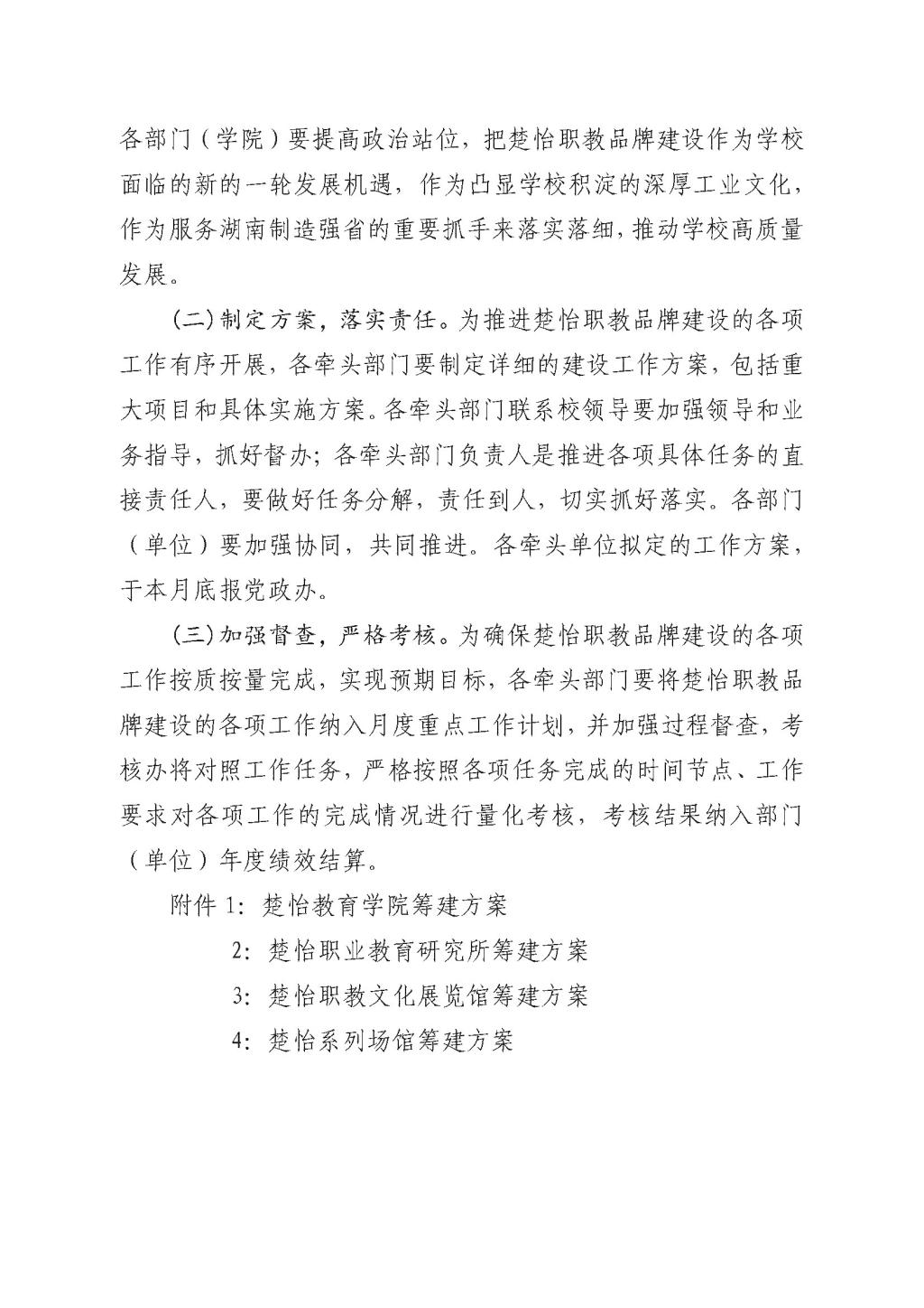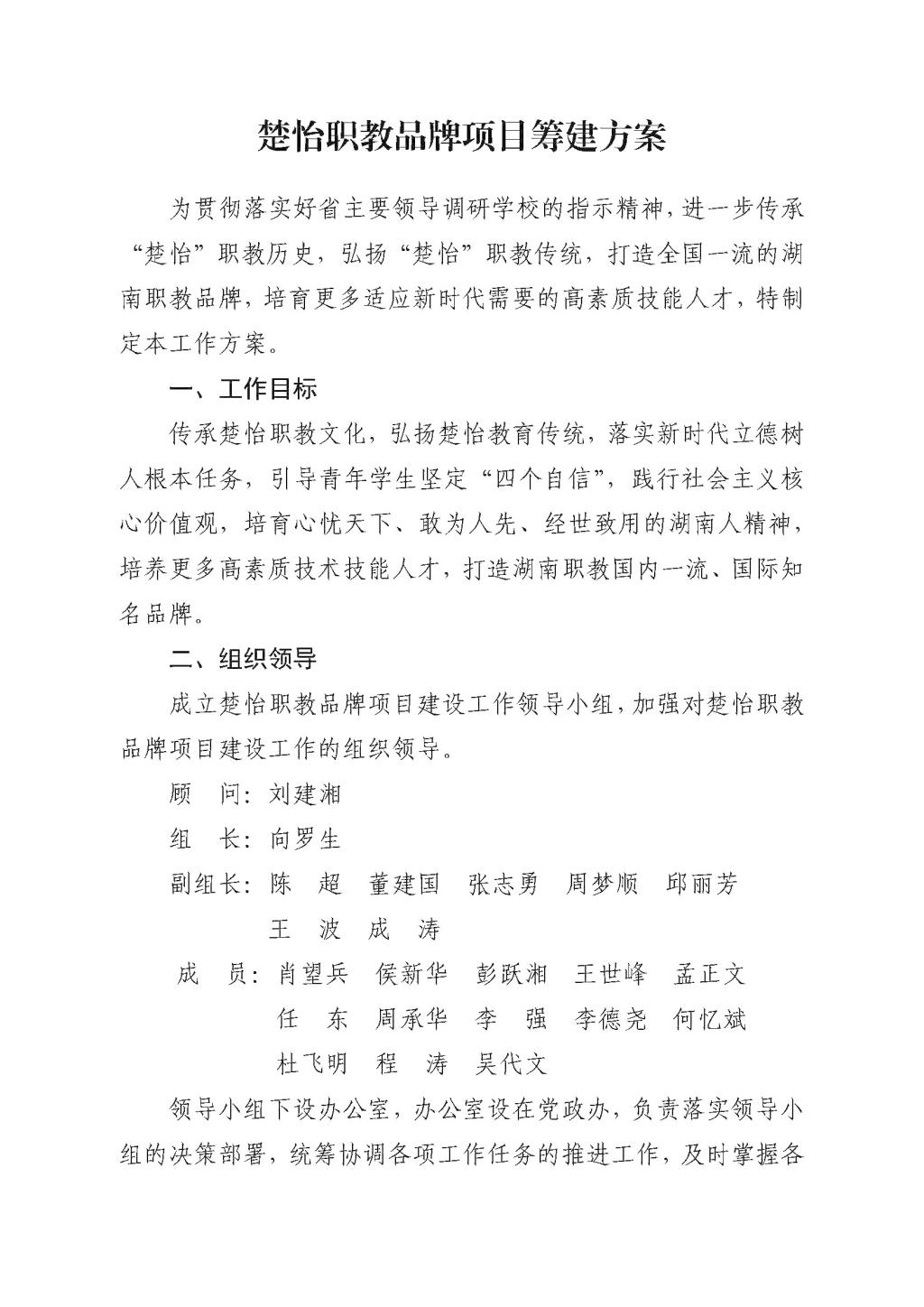 关于印发《楚怡职教品牌项目筹建方案》的通知