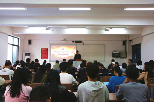 本网讯 10月15日下午,我校党委副书记、校长向罗生在汽车大楼作题为《中国共产党人的自信》专题党课。汽车工程学院主要负责人、教职工党员、学生党员代表及天心阁文学社成员聆听此次党课。