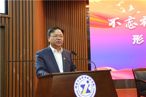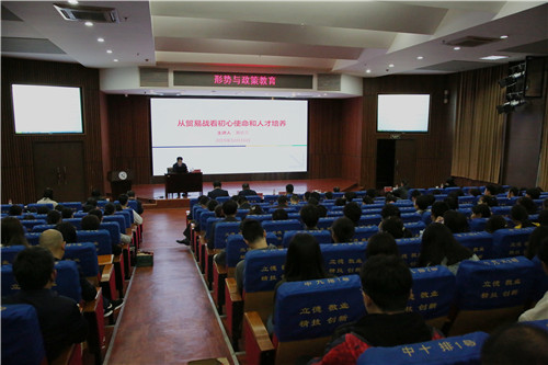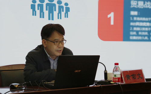 本网讯 10月16日,全国人大深圳基地客座教授黄佑文来我校作《从贸易战看初心使命和人才培养》主题讲座,从“贸易战的本质与应对、贸易战与初心使命、贸易战与人才培养、中美关系史、贸易战的延伸”等环节进行讲解。学校处级以上领导干部、教职工及学生党员代表供300余人现场聆听,讲座由党委副书记陈超主持。