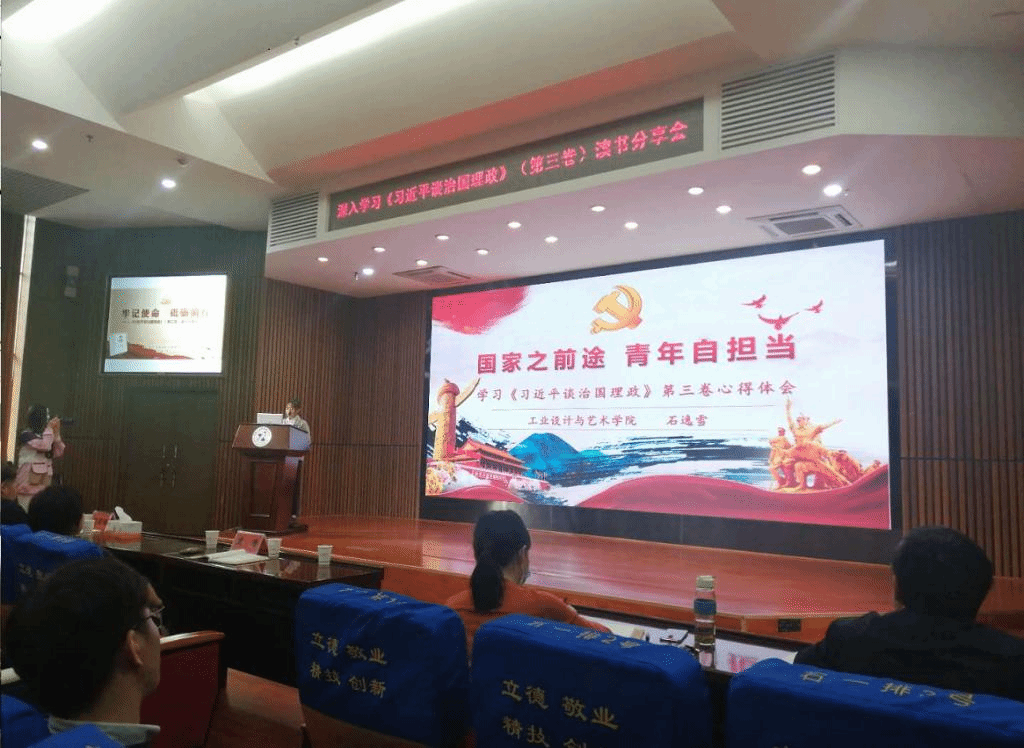 本次集中学习活动分专题报告会和读书分享会两个环节进行,在读书分享会上,我院学生党支部的学生代表石逸雪,以《国家之前途、青年自担当》为主题,结合自身学习、工作和生活实际,分享了她深入学习《习近平谈治国理政》(第三卷)的心得体会。