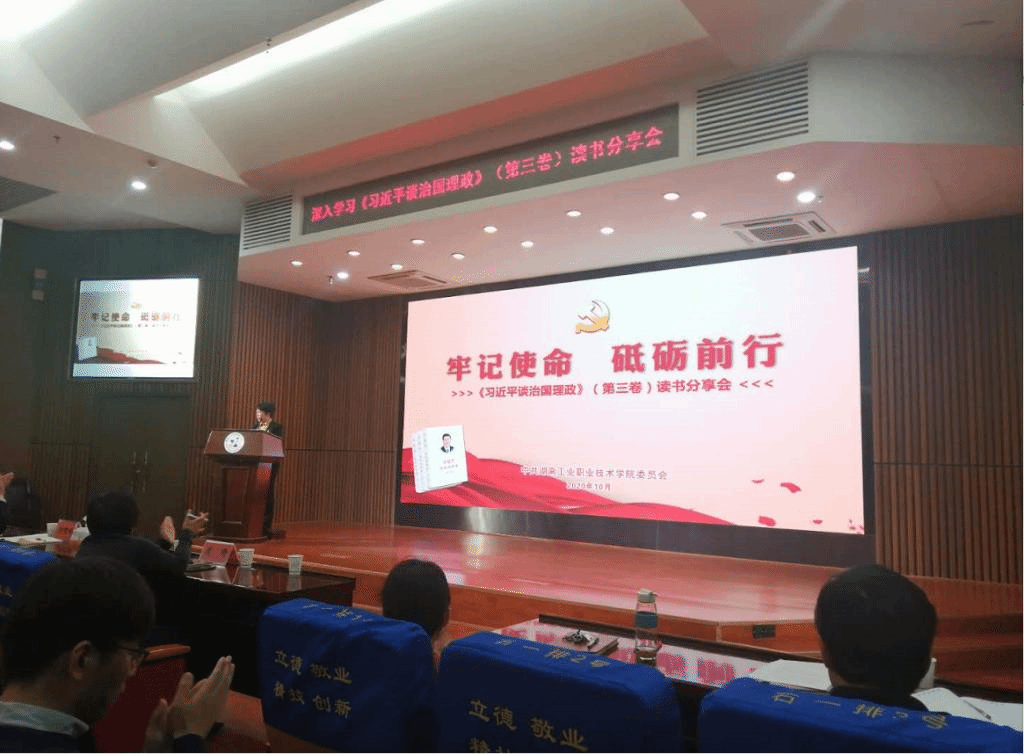 杨颖在主持学习活动时指出,《习近平谈治国理政》(第三卷)集中收录了党的十九大以来,习近平总书记的重要论述和重大思想观点,集中展示了党的最新理论创新成果,深入学习《习近平谈治国理政》(第三卷),有助于学懂弄通做实习近平新时代中国特色社会主义思想,不断增强“四个意识”、坚定“四个自信”、做到“两个维护”。在今后工作中,要坚定理想信念,践行立德树人使命,为学校的双高建设、内涵发展砥砺奋进,铿锵前行。