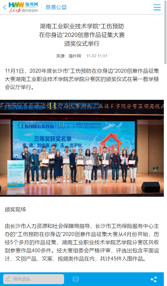 人民日报报道我院“工伤预防在你身边”2020创意作品征集大赛颁奖仪式