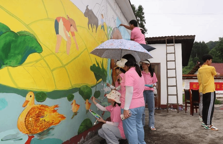 此次活动以墙绘为主要内容展开,实践团深入湘西自治州龙山县洗洛镇青艾村,用手中的画笔为村庄增色添彩。他们围绕乡村振兴主题,充分发挥创作力与想象力,将白墙打造成具有独特魅力的文化墙。