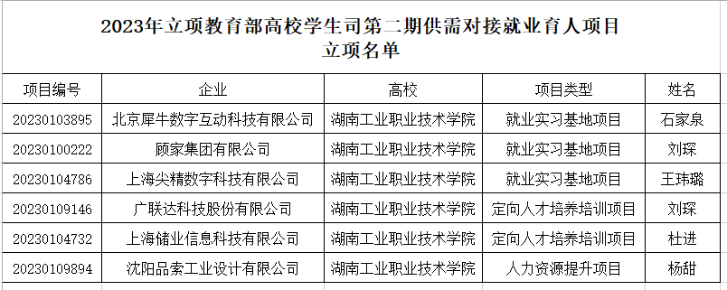 据网讯 日前,教育部高校学生司公布第二期供需对接就业育人项目名单。工业设计与艺术学院有6项供需对接就业育人项目被批准立项,其中就业实习基地项目3项、定向人才培养项目2项、人力资源提升项目1项。