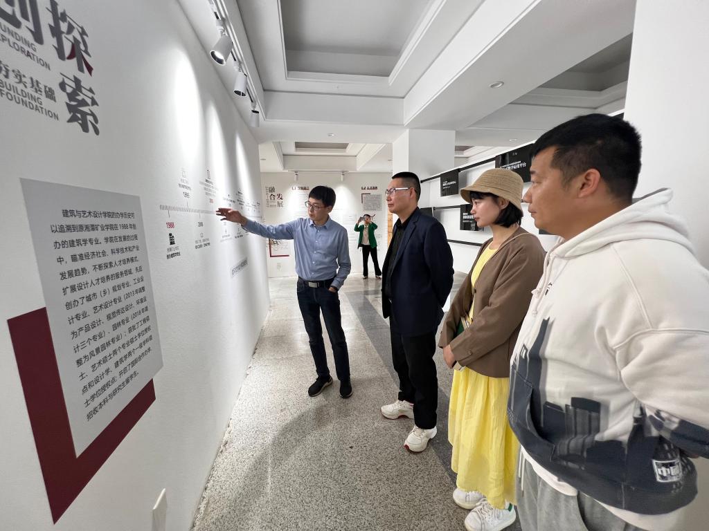 在湖南科技大学建筑与艺术学院院长吴志军的讲解下,宁朝阳一行人依次参观了该学院的院史馆、双创工作室、实验室和专业教室,详细了解了建筑与艺术设计学院的发展历程、学科专业教学等相关情况。