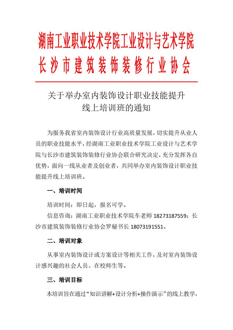 关于举办室内装饰设计职业技能提升线上培训班的通知