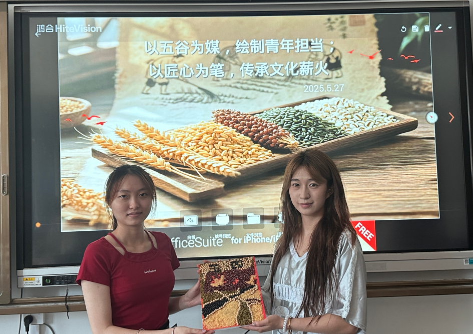 工业设计与艺术学院党总支副书记杨甜表示,“创作无需精湛技艺,只需一颗热爱生活的心。今天师生一同感受‘指尖上的劳动教育’,以粮食为“颜料”,以匠心为“画笔”,既是传统文化的美好延续,也是师生创意的生动表达。”