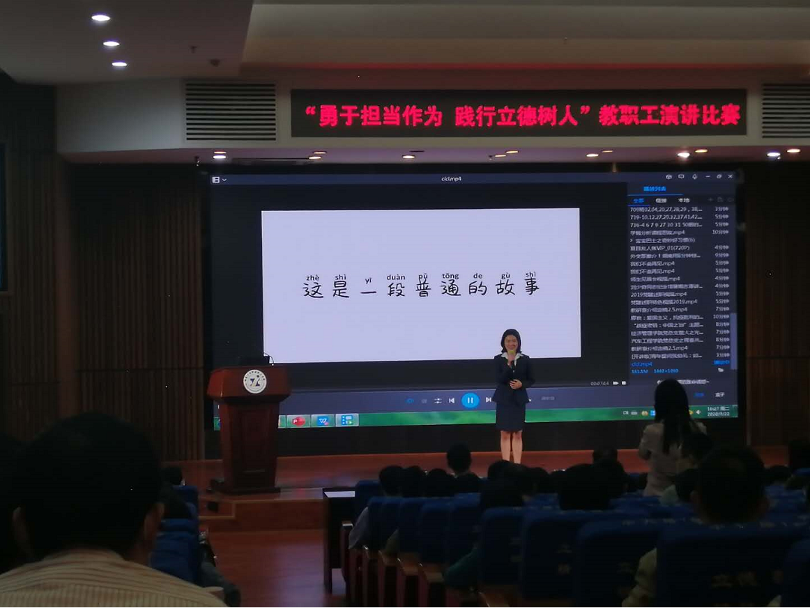根据学校教职工演讲比赛活动部署安排,我院党总支于9月8日举办了教职工演讲选拔赛,最终挑选文娅茜老师作为代表参加学校决赛,经过充分的各项准备和现场的精彩发挥,最终取得了良好成绩。