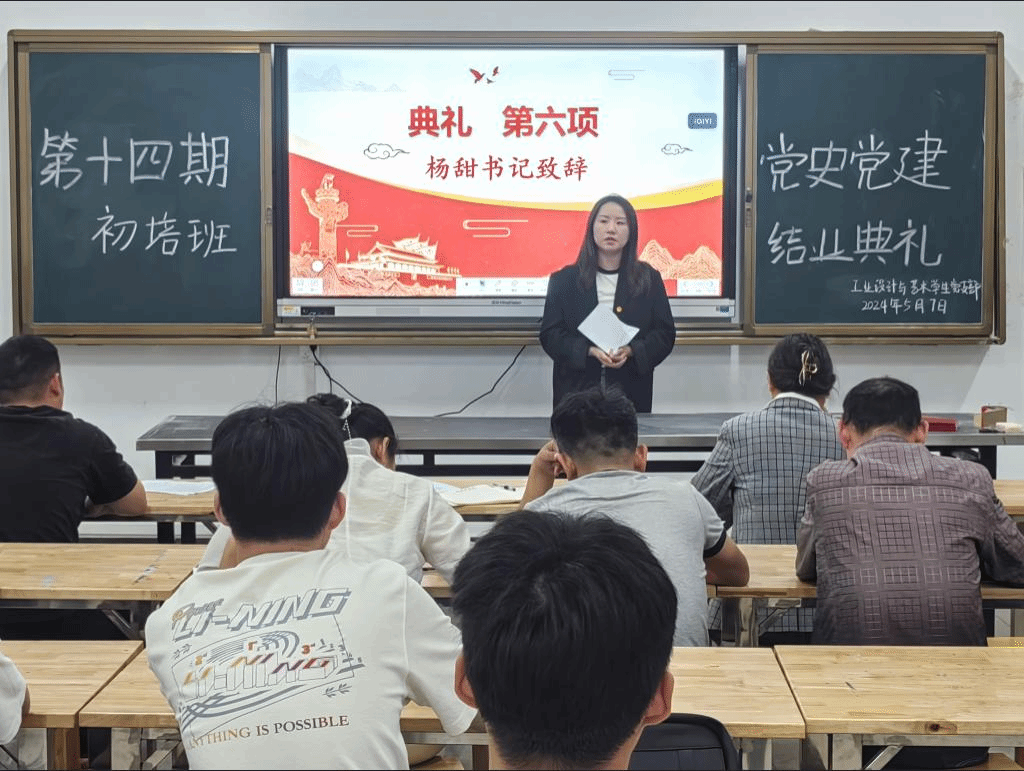 本网讯 2024年5月7日,工业设计与艺术学院第十四期党史党建初培班在匠心楼205顺利开展。学院党总支副书记杨甜、党务办主任、学生党支部书记及全体辅导员、第十四期初培班全体学员参加本次典礼。