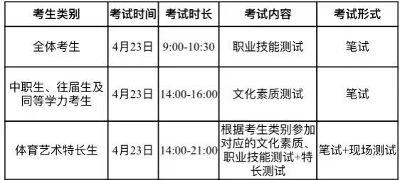 (二)职业技能测试:因疫情影响,面试考试以书面做答方式,合并在职业技能测试笔试试卷中,职业技能测试总考试时长为90分钟。职业技能测试笔试内容按学校已公布的对应类别考生职业技能测试笔试大纲执行,考试方式和内容不变。面试(以书面作答方式)主要考查考生的思想道德及价值取向、逻辑思维与综合分析、心理健康与表达能力等基本素养。面试书面作答不得透露考生姓名、考生号、身份证号、学校等个人信息,若透露即为违纪,考试成绩判为零分。