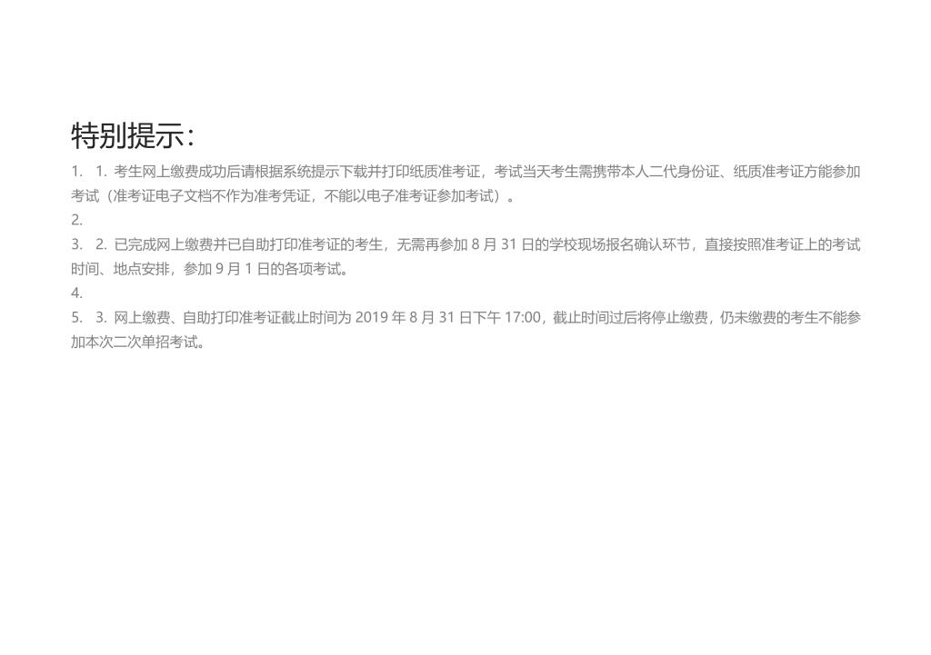 我校正式开通二次单独招生网上缴费及自助打印准考证功能。网上缴费及自助打印准考证时间截至:2019年8月31日17:00。