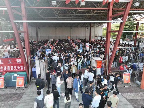 “同学,过来了解一下岗位吧!”“您好,请问贵公司专技岗有哪些要求?”……招聘会现场人气十足,学生们咨询提问投递简历,公司HR们耐心解答招揽人才。