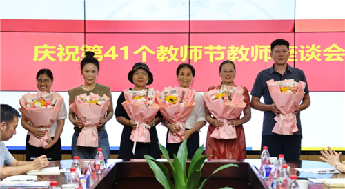 本网讯 “和学生们在一起的日常就是我们互相陪伴与成长的过程。”“幸福于当初的选择,过自己想要的职业生涯。”……9月10日,学校召开庆祝第41个教师节座谈会,校长吴亮红、党委副书记成涛、副校长谢希钢、副校长李强,从教三十年教师代表、优秀教师代表等27位教师代表参加座谈。座谈会由成涛主持。