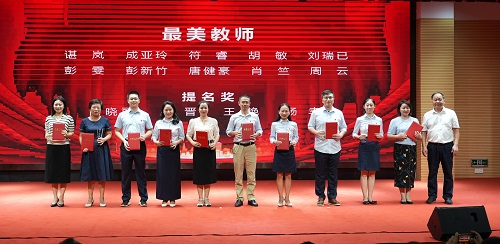 现场表彰了学校首届“最美系列”获得者,党委书记刘建湘为谌岚、成亚玲、符睿、胡敏、刘瑞已、彭雯、彭新竹、唐健豪、肖竺、周云10位“最美教师”获得者颁发证书,尚晓丽、王晋、王艳、杨幸获“最美教师”提名奖。纪委书记王波为陈烨、康琼、夏利平、许娜、杨宁、赵文雪6位“最美管理工作者”获得者颁发证书,蔡丽、刘波娇、田亚欢获“最美管理工作者”提名奖。副校长成涛为董琳、纪文婷、彭上、杨晶、易珺、张家臣6位“最美辅导员(班主任)”获得者颁发证书;贺盛、李娅、吴倩获“最美辅导员(班主任)”提名奖。副校长侯新华为龙华元、李丽慧、何德蒙、董志平4位“最美服务工作者”颁发证书;余金文获“最美服务工作者”提名奖。